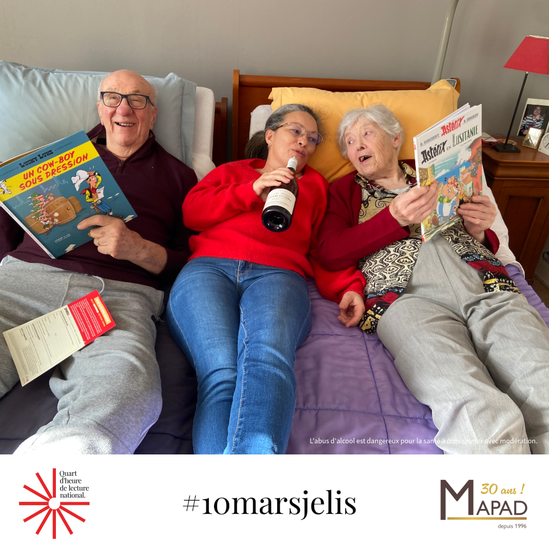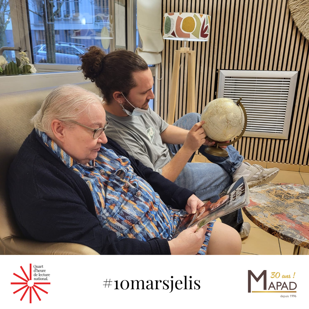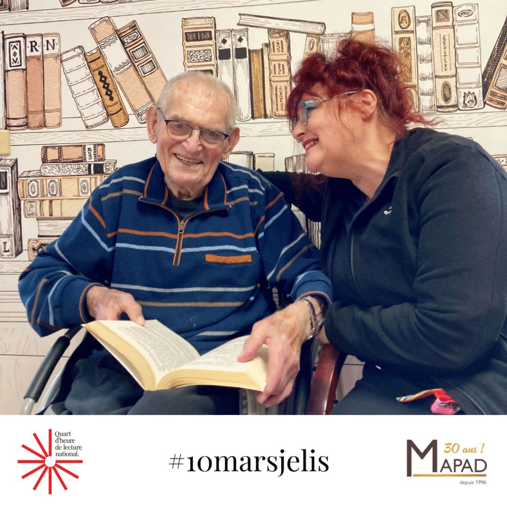 En 2026, les établissements MAPAD participent au Quart d’heure de lecture national #10marsjelis porté par le Centre national du livre. Pendant quinze minutes, les résidents, collaborateurs et familles sont invités à arrêter toute activité pour partager un moment d’évasion à travers la lecture.