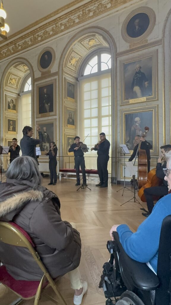 Dans le cadre de la Semaine bleue, semaine nationale des personnes âgées, le Château de Versailles a invité plusieurs résidents de l’Union Belge de Courbevoie à une visite privée, jour de fermeture du château ! Grâce aux explications des élèves des écoles de Versailles et des médiatrices, nous avons eu le plaisir de découvrir la vie à la cour de Louis XIV, en toute intimité. Surprise exceptionnelle à la fin de la visite, un petit concert offert par des musiciens venus du Brésil !